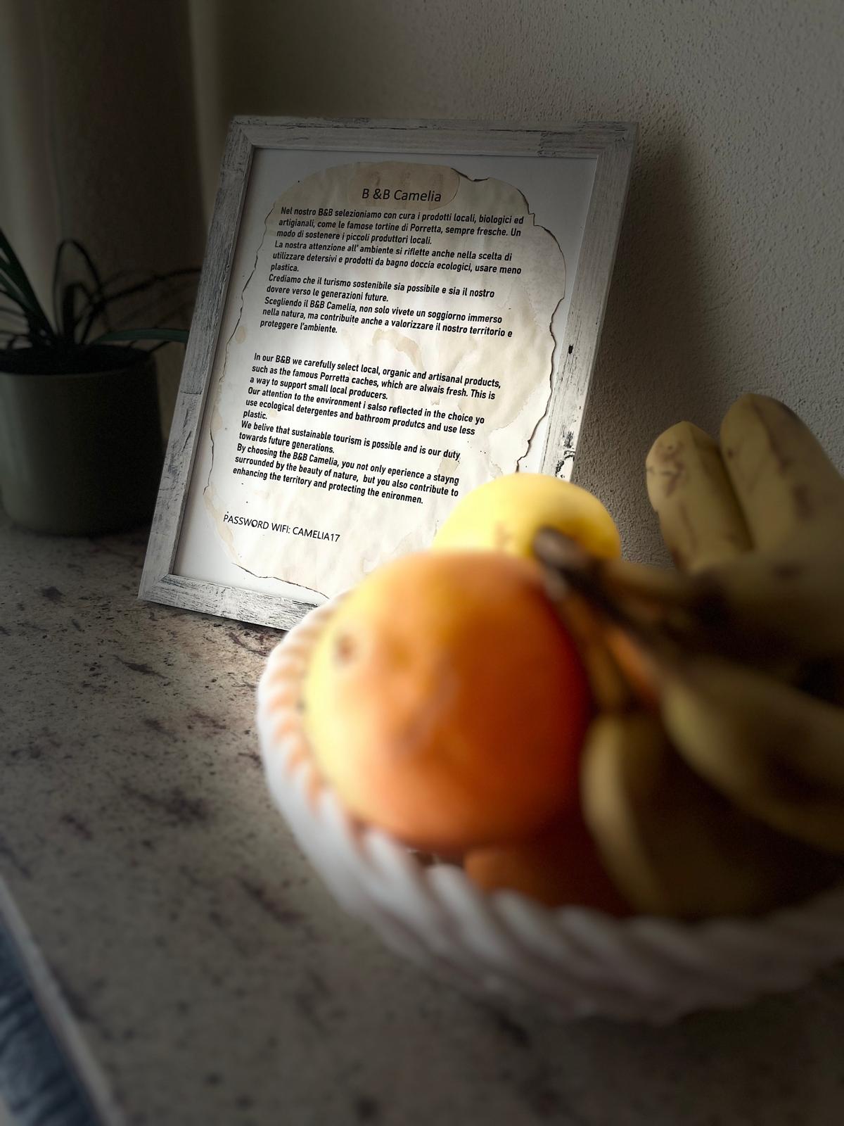 Per rendere il vostro risveglio ancora più dolce e autentico, troverete nel appartamento una deliziosa coccola ad attendervi: marmellate fatte in casa con frutta del nostro frutteto, fragranti crostate, ciambelle o torte preparate con prodotti genuini del territorio, acqua, latte, yogurt, caffè, tè e frutta fresca. Tutto incluso nel prezzo.