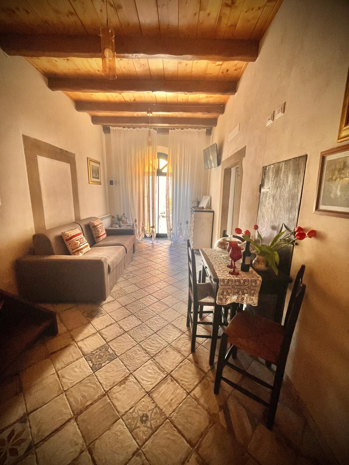 Il salot è un'oasi di luce e relax, impreziosito dalla bellezz della pietra e del legno. Un comodo divano matrimoniale baciato dalla luce che filtra attraverso una porta a vetro, ' invita a piacevoli momenti di riposo e convivialita